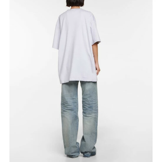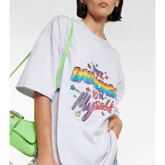 This striking 90/10 cotton-blend jersey T-shirt from Balenciaga will enliven everyday dressing. It has a haphazard-effect bleached pattern, distressed detailing, and colorful graphics.