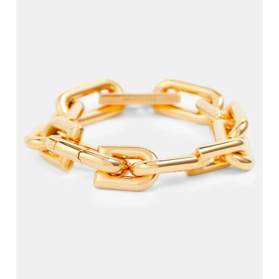 The graphic B that features in this golden bracelet was introduced as a key motif in Balenciaga’s Resort runway show. Made from brass, the design features the chain links that have become a label signature.