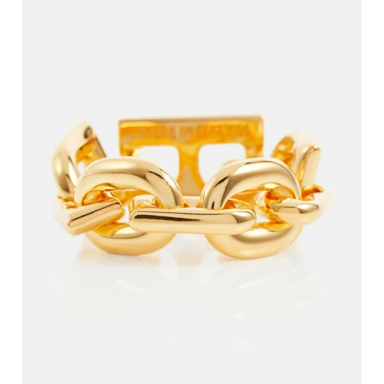 Gift yourself, or a fellow Balenciaga lover, this B-Chain ring. It’s made from golden brass chainlinks with an engraved monogram pendant.