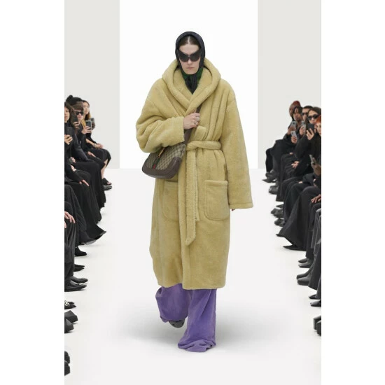A favorite from Balenciaga’s Resort ’22 runway, the Bathrobe wool coat is as cozy as it is stylish. It has a spacious hood, a same-fabric sash and ample patch pockets in the style of plush bathrobes.