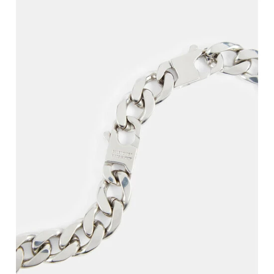 Take a bold approach to accessorizing with this necklace from Balenciaga. Its embellished BB pendant and partially crystal-encrusted chain are obvious design highlights but take note of the practical double fastening, too.