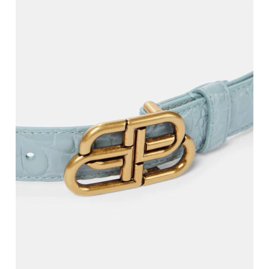 This BB belt from Balenciaga comes in a classic light blue shade that will style effortlessly with other pastels. It’s made from calf leather with a croc-embossed finish.