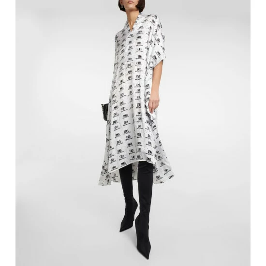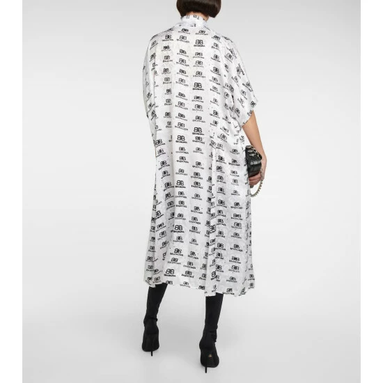 Demna’s mastery of oversized fits and logotypes culminates in this midi dress from Balenciaga. Made from silk jacquard, this piece features scrolling BB Icon logo lettering and an asymmetric hem.