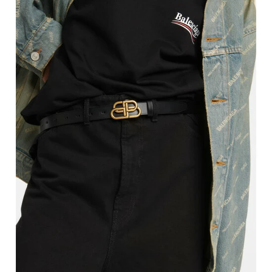 Rendered in antiqued golden metal, Balenciaga’s new BB logo serves as the buckle – and centerpiece – of this black belt. The design is crafted in Italy from vegetable-tanned calfskin leather, and it has stud-adjustable closure and a keeper strap. Let yours cinch billowing dresses for a dose of modern styling.