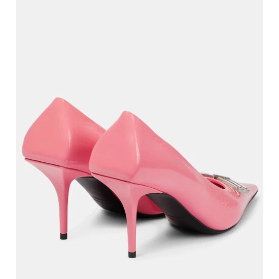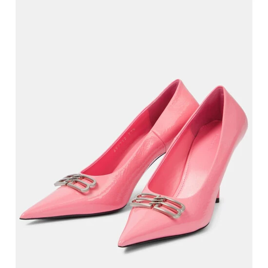 These pink pumps from Balenciaga are shaped from smooth leather, and topped with silver-toned BB emblems.