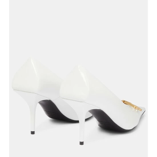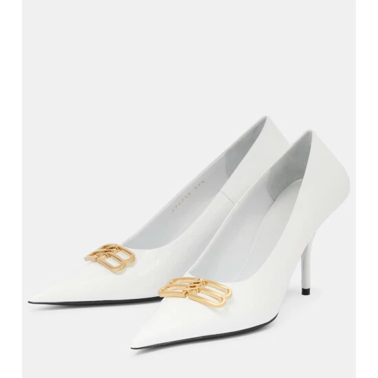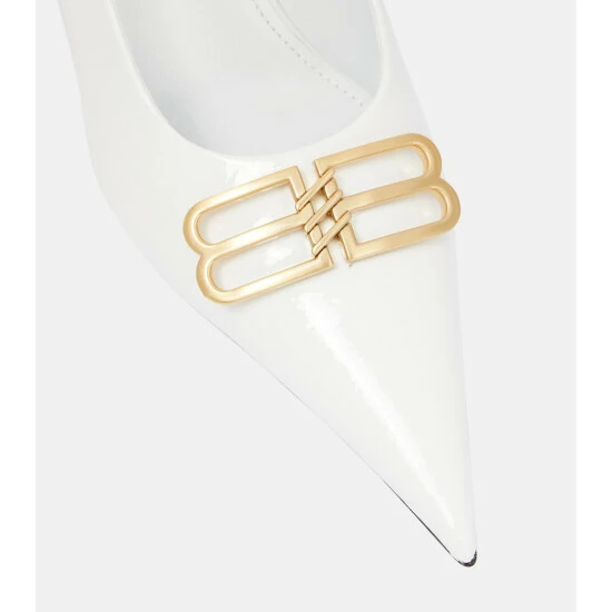 These white pumps from Balenciaga are shaped from smooth white patent leather, and topped with gold-toned BB emblems.