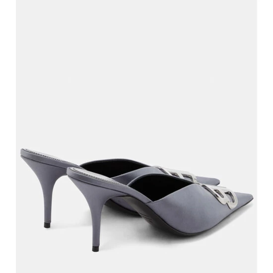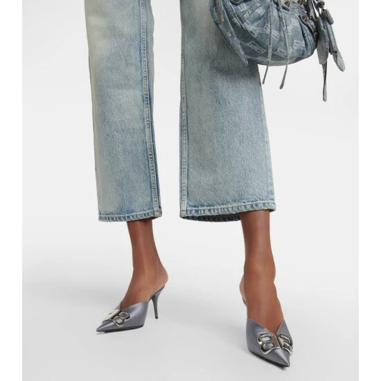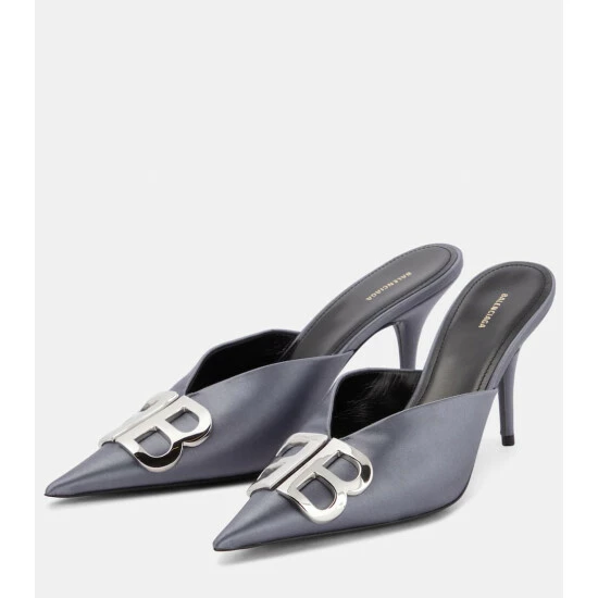 Effortless elegance is just one step away in these mules from Balenciaga. Resting atop comfortably low heels, they’re made from satin with a light sheen and shaped with BB-adorned, razor-sharp profiles.