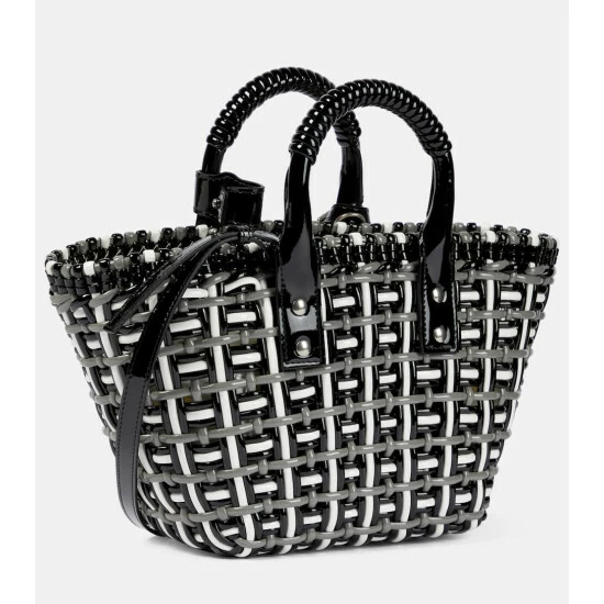 Swing Balenciaga’s Bistro Basket XS tote by your side on lazy beach days. It’s woven from faux leather, and features a glossy detachable luggage tag and shoulder strap for hands-free wear.