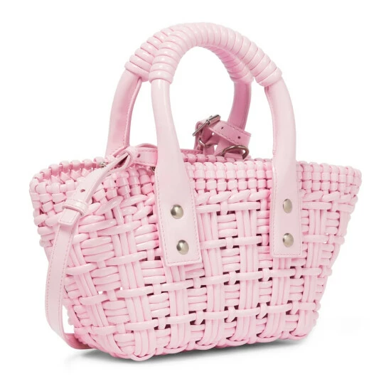 The Bistro XXS tote is Balenciaga’s fun take on woven basket bags. Made from lacquered pink faux leather, it features a logo-printed luggage tag and a detachable shoulder strap.