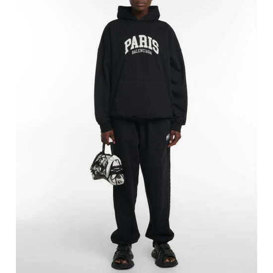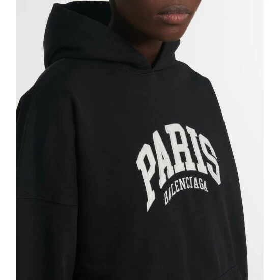 Ideal for laid-back styling, this hoodie from Balenciaga’s Cities collection has a relaxed fit and a kangaroo pocket. It’s made from black fleece-backed cotton jersey and embroidered with “Paris Balenciaga” logo lettering.