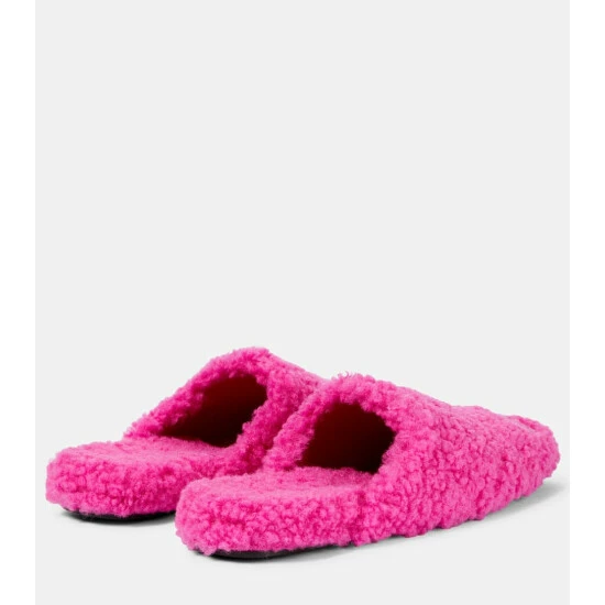 The bright pink Cosy BB slippers from Balenciaga will make a comfortable yet cool addition to casual rotations. They’re designed in Italy from plush faux shearling with squared toes and tonal monogram hardware. Let yours anchor the label’s oversized shirt dresses.
