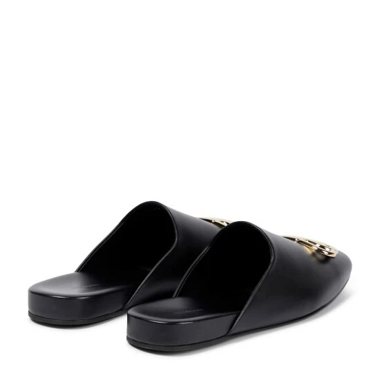 Ease into a luxe state of mind with these soft leather slippers from Balenciaga. Set on a flat sole, the design is shaped with a square toe and is topped with polished golden-hued BB hardware. Wear yours with a denim jacket and jeans from the label for a contemporary look.
