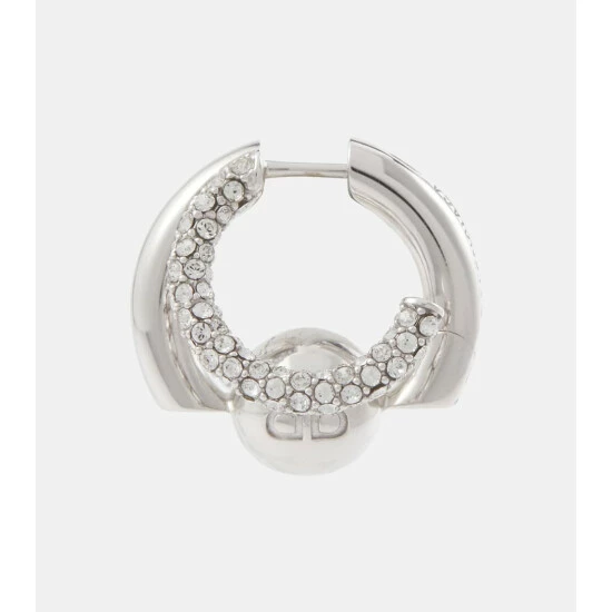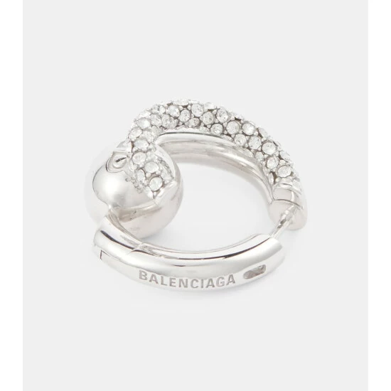 The Cut Double single earring from Balenciaga with be a glamorous addition to your ear stack. Made from sterling silver with a double hoop effect, it has a BB logo-engraved ball and pavé-set crystals.