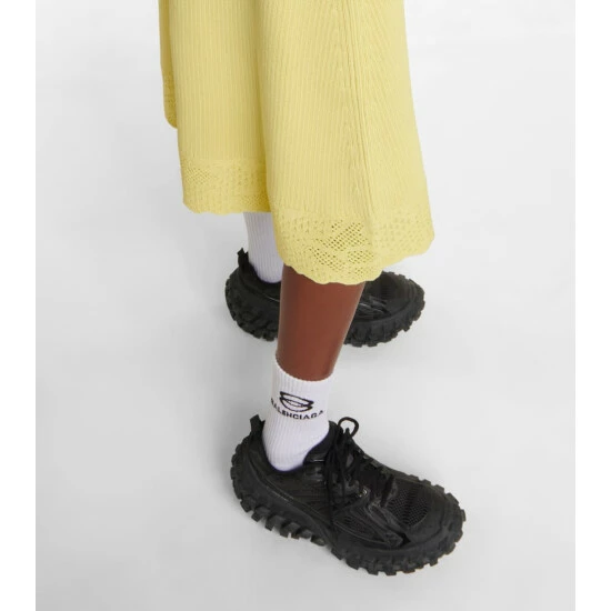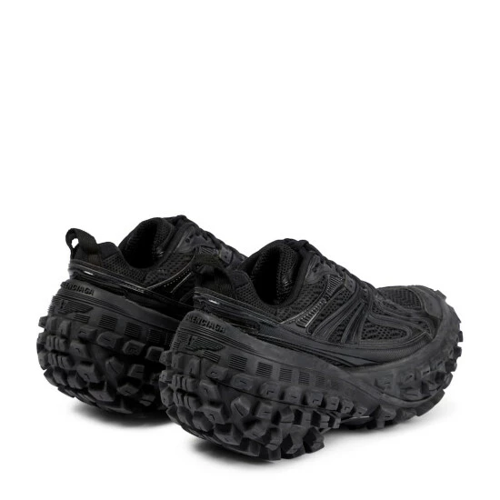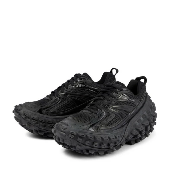 Innovative footwear is Balenciaga’s specialty, as evidenced by the brand’s latest drop of Defender sneakers. Designed with a worn-out effect, this pair has an extreme 15mm arch and a tire tread sole.