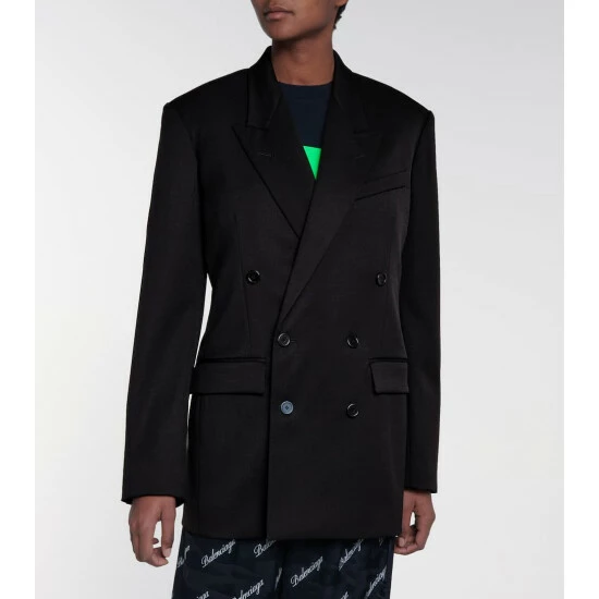 Balenciaga favors an architectural silhouette for most of its designs, this black stretch-wool blazer being no different. The double-breasted style is framed with padded shoulders and front flap pockets that highlight the wearer’s waist. Swing the label’s Hourglass totes alongside for a directional finish.