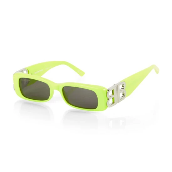 These neon yellow sunglasses from Balenciaga speak to a ’90s revival. They have rectangular frames – fitted with grey lenses for full UV protection – and iconic silver monogram hardware at the temples.
