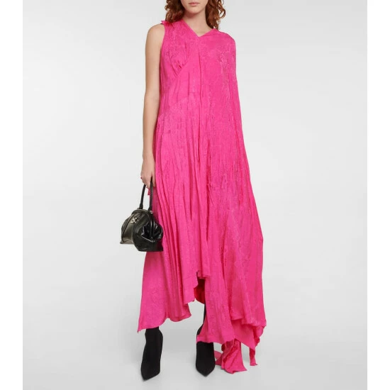 Make a statement at summer events in this asymmetric midi dress from Balenciaga. The floral jacquard style has a contrasting back panel and features one sleeveless shoulder and another draped one.