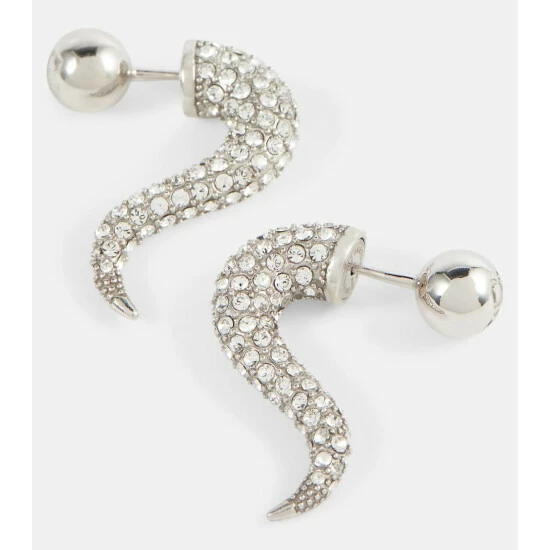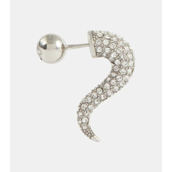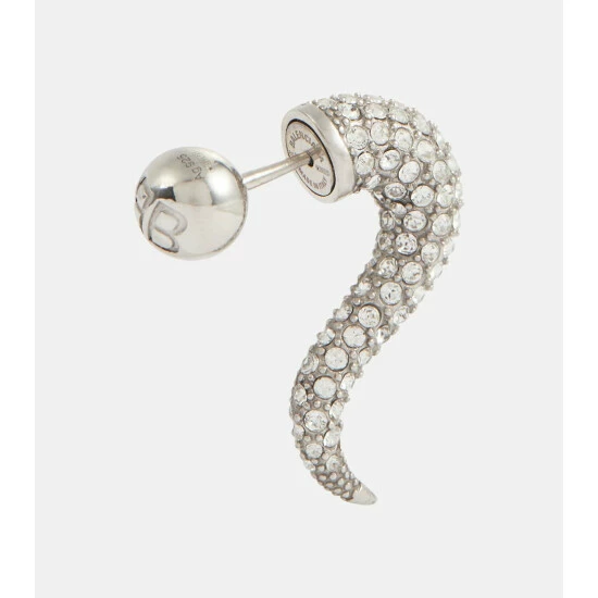Make a cool statement with the Force Horn silver earrings from Balenciaga. They are made in Italy from silver and feature glittering crystal embellishments with a pin fastening,