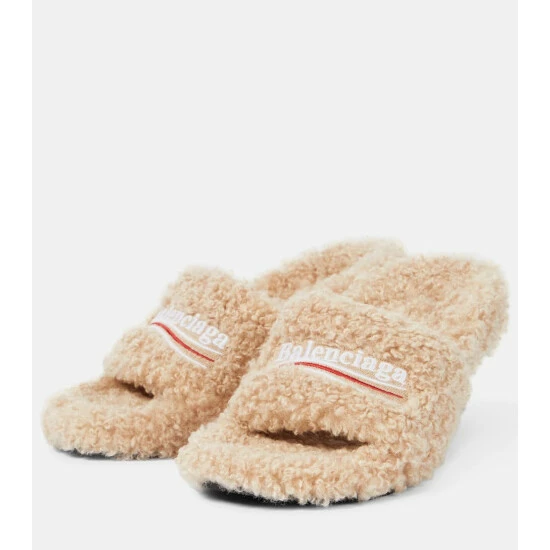Balenciaga blends plush texturing with a chic silhouette to present the Furry sandals. Covered in curly teddy fabric all over, they have rounded toes that point to poolside styles, and rest on 80mm rubber heels.