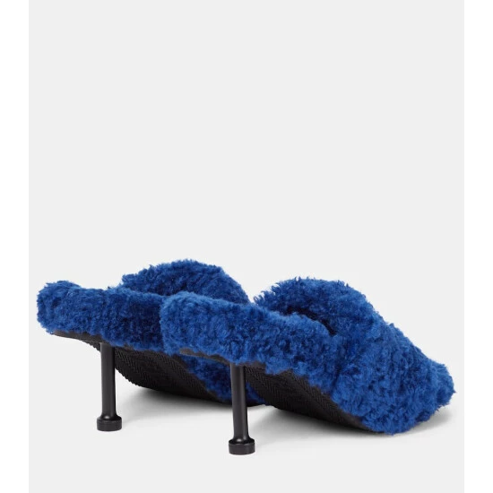 Balenciaga’s election-inspired logo is reborn on these Furry blue sandals. Made in Italy from cozy faux shearling, they’re set atop metal heels with rubber soles that nod to traditional pool slides.