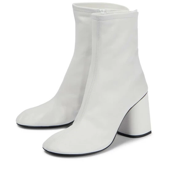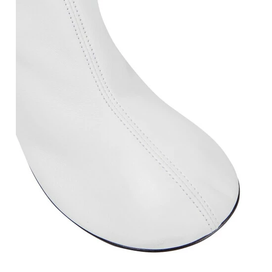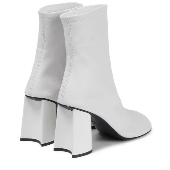 Crafted in Italy from soft lamb leather, the white Glove ankle boots from Balenciaga feature rounded toes, tonal zippers, and sculpted block heels.