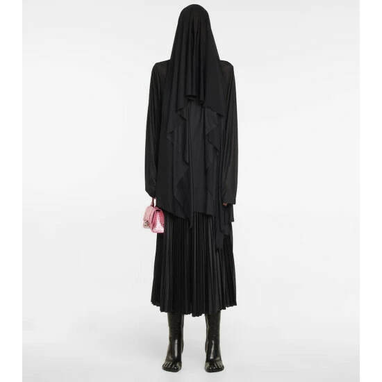 This high-neck top from Balenciaga will double as a lightweight cape during the warm-weather season. It drapes down the body in fluid folds and falls to an asymmetric handkerchief hem.
