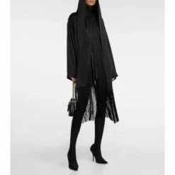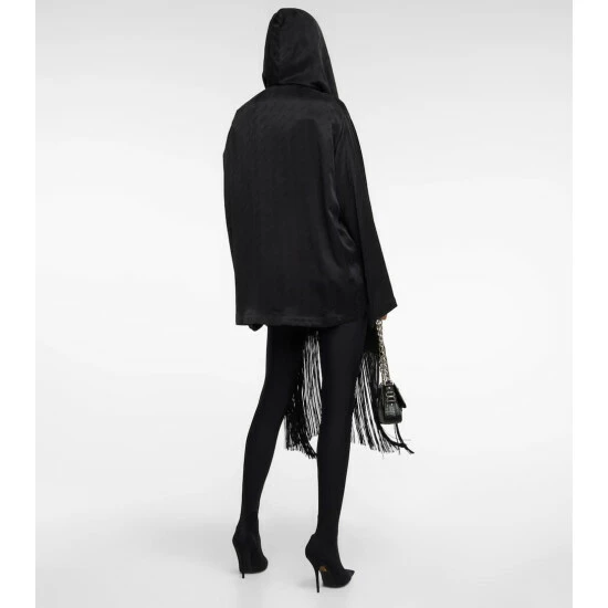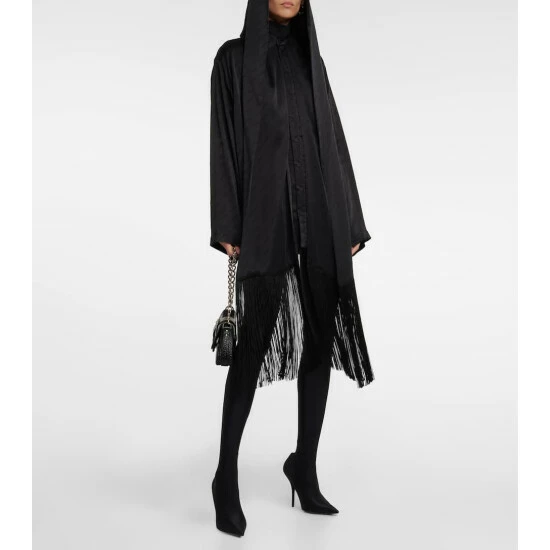 This Balenciaga shirt was made in Italy from glossy black cupro and shaped into a classic relaxed silhouette. The style features a hood and fringed scarf for endless styling.