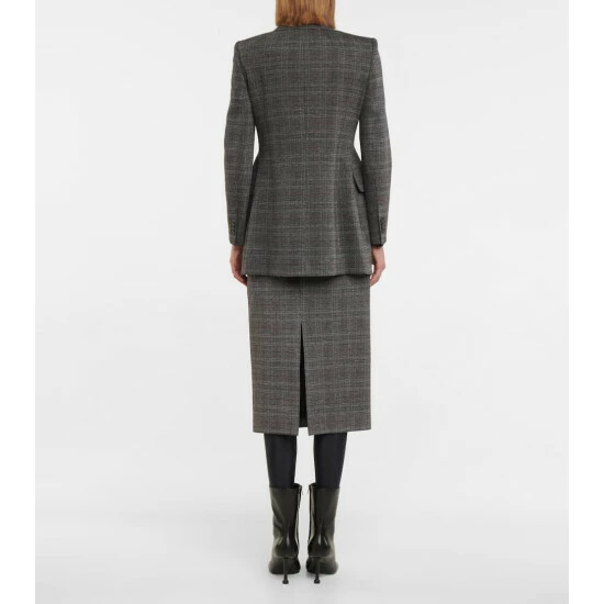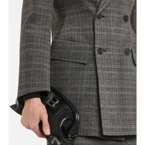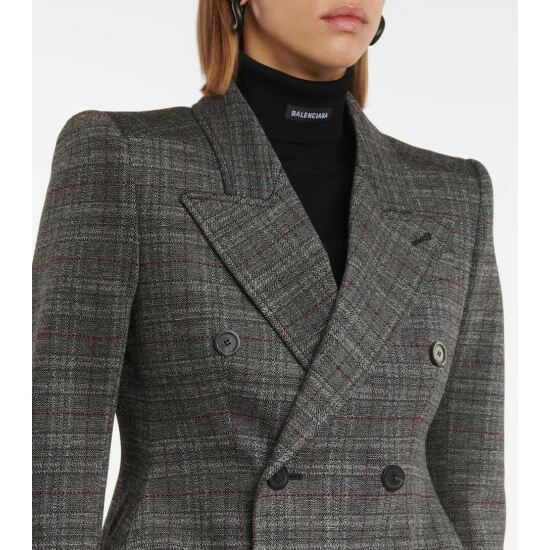 Balenciaga’s iconic Hourglass blazer is a silhouette cemented in fashion history. This elegant checked design is defined by sharply padded shoulders and a cinched waist, and hits just below the hips.