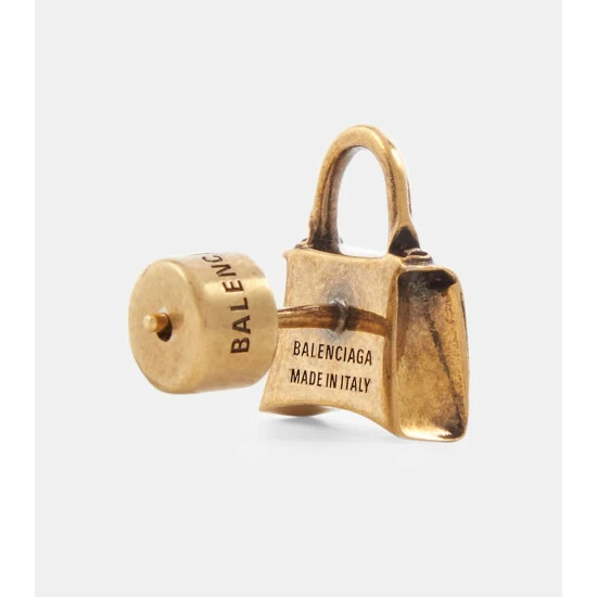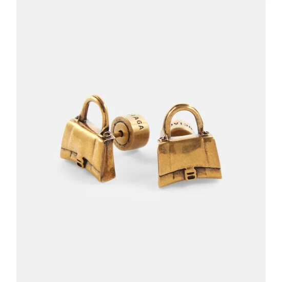 These stud earrings from Balenciaga are designed to resemble the brand’s iconic Hourglass tote bag. They’re made in Italy from metal with an antique finish.