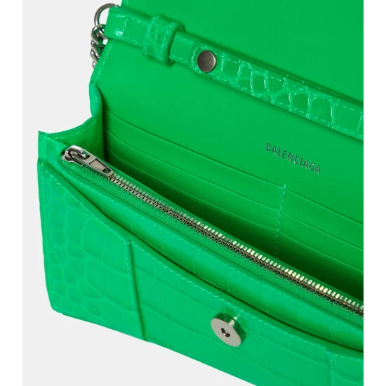 This wallet on chain is the latest member of Balenciaga’s Hourglass family. In vivid-green hyperreal mock-croc, it’s a serious fashion statement that’s practical, too – it has six card slots, another one for notes and a zipped compartment. Swing yours over the shoulder or in hand.