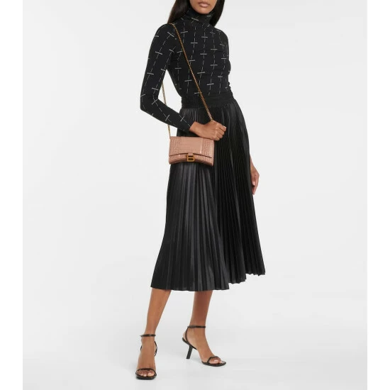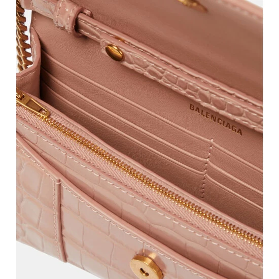 There is no better way to complement Balenciaga’s arch Hourglass blazers than with a contoured wallet on chain of the same name. This compact iteration comes in croc-embossed warm beige leather, with antiqued hardware to match and six internal card slots.
