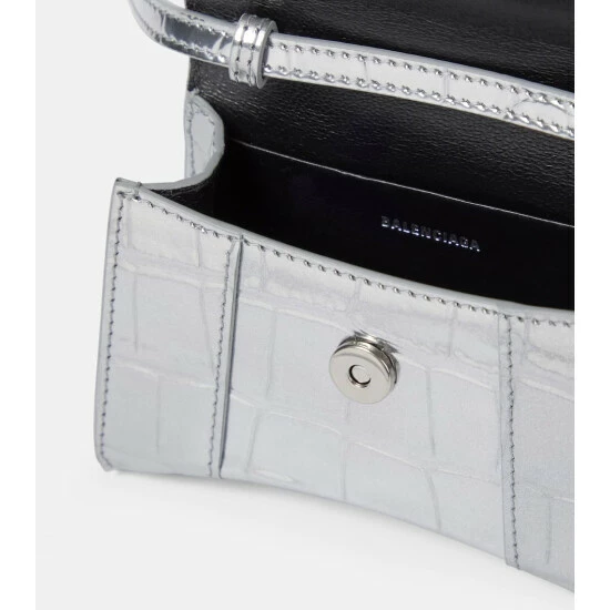 With strong lines inspired by Cristóbal Balenciaga’s iconic tailoring, the silver-toned Hourglass Mini crossbody bag will add a polished touch to every look. The croc-effect embossing on the leather is created with a bespoke metallic matrix that expertly imitates the shape and texture of scales. Swing yours crossbody, over the shoulder or in hand.