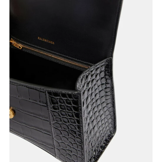 With strong lines inspired by Cristóbal Balenciaga’s iconic tailoring, the black Hourglass Small crossbody bag will add a polished touch to every look. The croc-effect embossing on the leather is created with a bespoke metallic matrix that expertly imitates the shape and texture of scales. Swing yours crossbody, over the shoulder, or in hand.