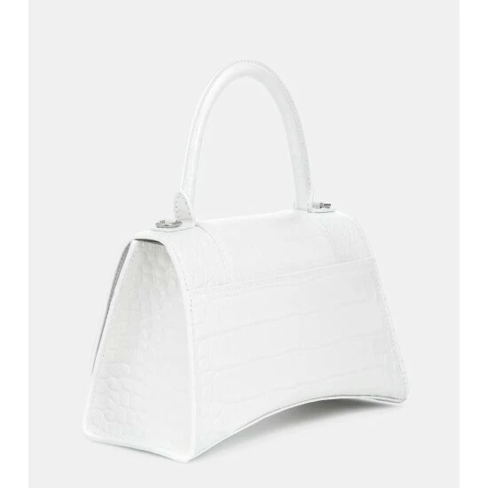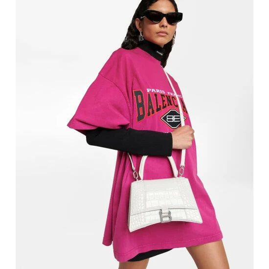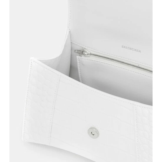 Balenciaga’s Hourglass shoulder bag is inspired by the house founder’s structural tailoring codes. Timeless in white, it’s made in Italy from croc-effect calf leather and adorned with the brand’s signature B monogram in aged silver-tone hardware. Attach the shoulder strap to keep your hands free when picking up your coffee order.