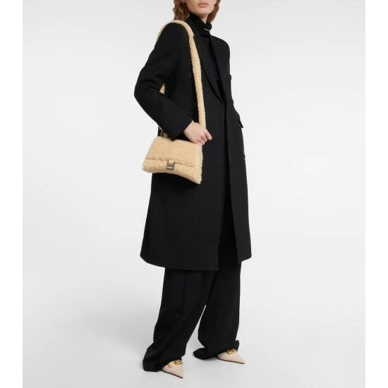 Balenciaga’s Hourglass Small bag is contoured to a label-signature silhouette. Made from faux shearling and lined with leather, this design features a top handle, a detachable strap, and magnetic closure with a hardware B logo.