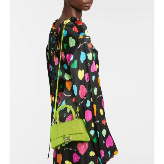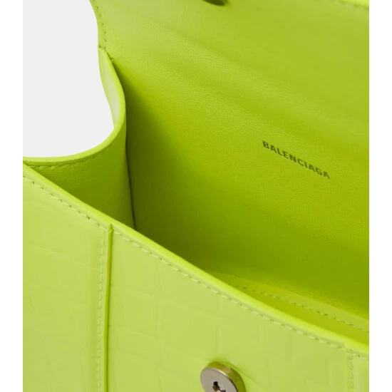 With strong lines inspired by Cristóbal Balenciaga’s iconic tailoring, the lime green Hourglass XS crossbody bag will add a polished touch to every look. The croc-effect embossing on the leather is created with a bespoke metallic matrix that expertly imitates the shape and texture of scales. Swing yours crossbody, over the shoulder or in hand.