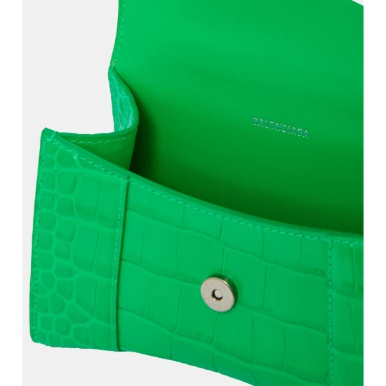 With strong lines inspired by Cristóbal Balenciaga’s iconic tailoring, the vivid green Hourglass XS crossbody bag will add a contemporary touch to every look. The croc-effect embossing on the leather is created with a bespoke metallic matrix that expertly imitates the shape and texture of scales.