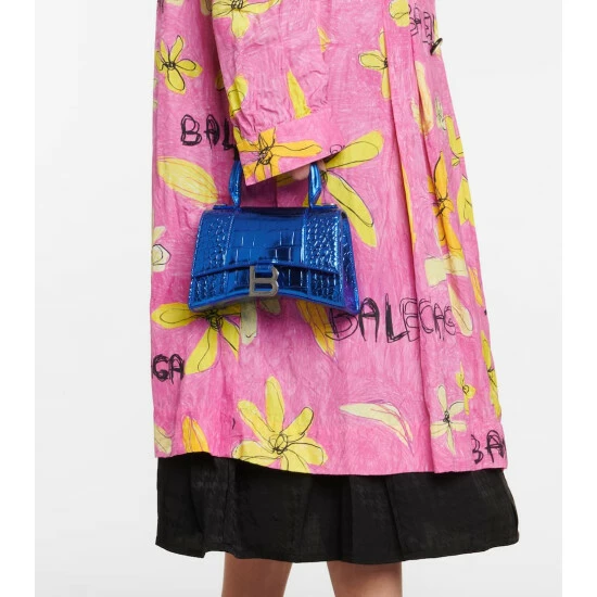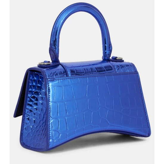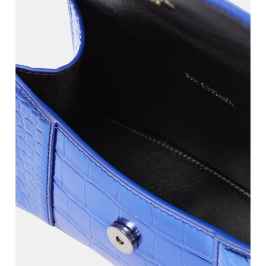 With strong lines inspired by Cristóbal Balenciaga’s iconic tailoring, the metallic blue Hourglass XS crossbody bag will add a polished touch to every look. The croc-effect embossing on the leather is created with a bespoke metallic matrix that expertly imitates the shape and texture of scales. Swing yours crossbody, over the shoulder or in hand.