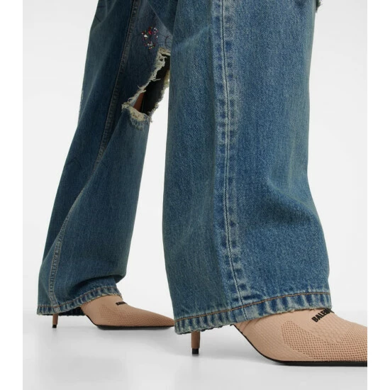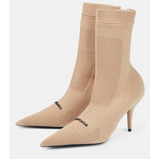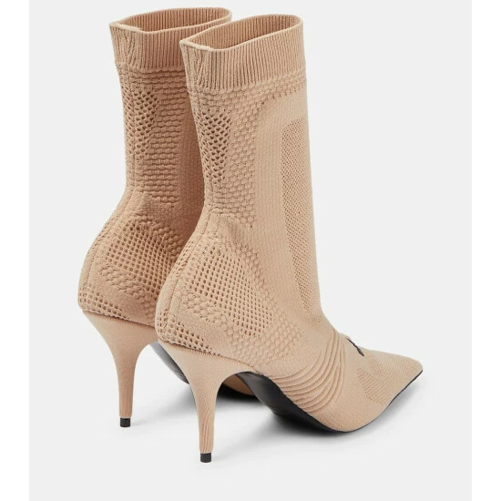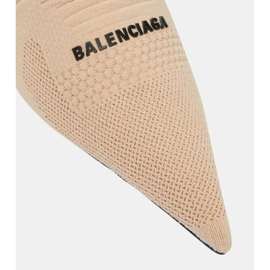 Balenciaga updates its Knife sock boots with this new 2.0 iteration made from beige textured knit. The style has razor-sharp pointed toes, sock-life shafts, and a contrasted 3D rubber logo on the front.
