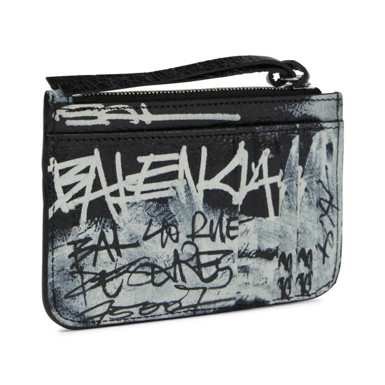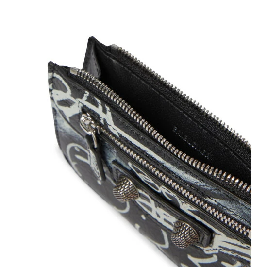 This card holder from Balenciaga is the perfect match for any bag from the Le Cagole family. Made from black leather, it’s finished with a white graffiti print and antique silver-toned hardware.