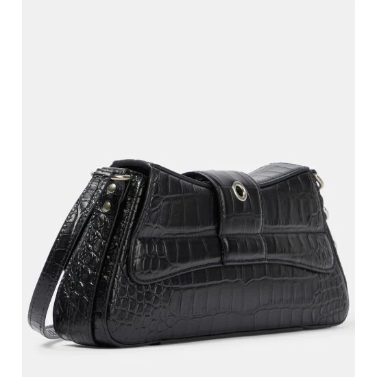 Meet Balenciaga’s latest accessory: the Lindsay Small shoulder bag. It’s made from croc-effect calfskin leather with a belt-style buckle, chainlink trim, and detachable leather crossbody strap.