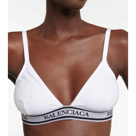 Great style starts with the basics, such as this Balenciaga bralette. It’s made from super-comfortable cotton-blend jersey and anchored with a logo-jacquard band under the bust.
