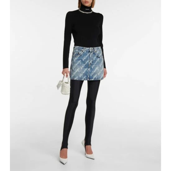 This miniskirt from Balenciaga features the brand’s scrolling logo print. Made from cotton-blend denim in a faded wash, it has a boxy silhouette and pockets at the front and back.