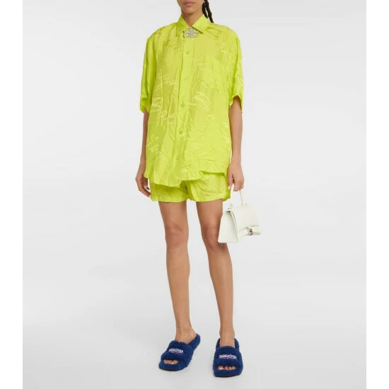 Balenciaga’s pajama shorts come pre-wrinkled, so you don’t need to worry about wearing them out. They’re made from technical fabric with hand-drawn jacquard branding.
