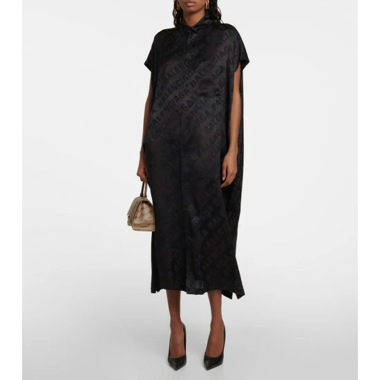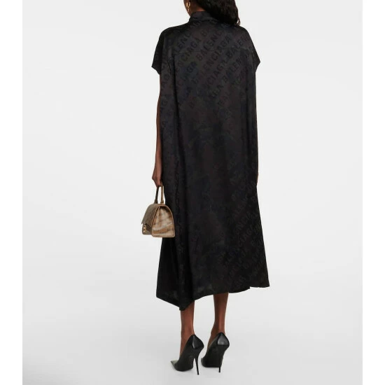 Raw-cut sleeves are one of the more subtle details on this jacquard shirt dress from Balenciaga. Made from lustrous silk, the style features a strolling logo lettering design, a buttoned front, and a spread collar.