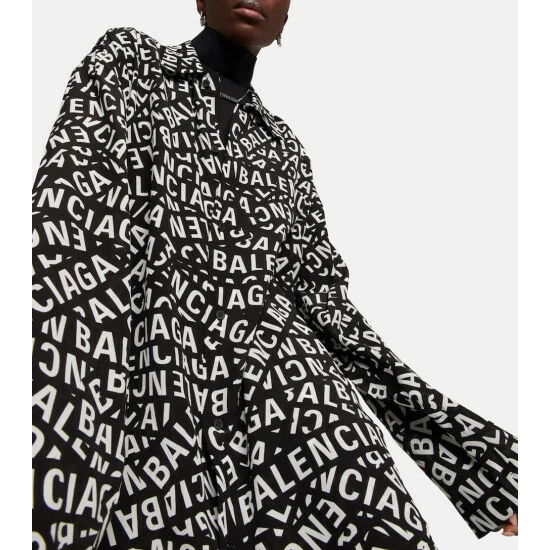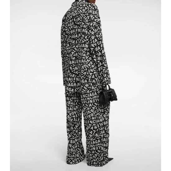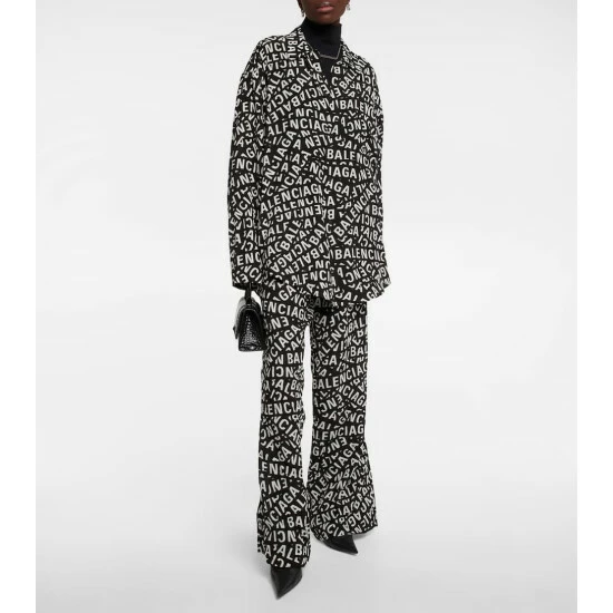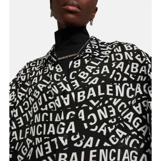 This shirt from Balenciaga is made from pure silk crêpe de chine with a taped logo print. It has an oversized cut, dropped shoulder seams, and a single patch pocket.