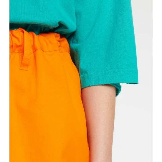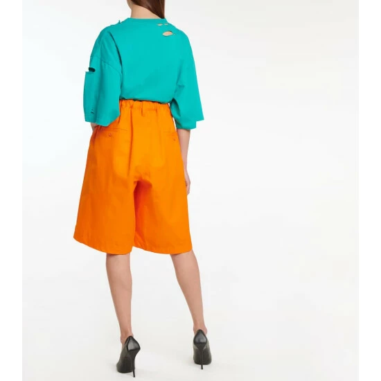 Inspired by workwear overalls, these cotton-twill shorts resound with Balenciaga’s tongue-in-cheek approach to design. In vivid orange, this oversized pair is shaped with billowing wide legs and anchored with an elasticated waistband. Temper yours with a svelte bodysuit layered underneath.