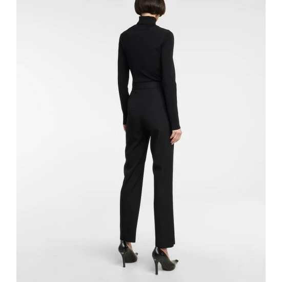 Look sharp in the Minimal by name and minimal by design pants from Balenciaga. In black wool, they’re made in a high-rise, straight-fit with pressed front creases. Hitting right at ankle length, they’re better suited to winter styling than summer-ready cropped styles.