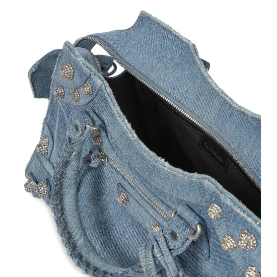 Balenciaga’s Neo Cagole City shoulder is made in Italy from black leather. Boasting a boxy silhouette with hand-braided handles and stylish hardware, the versatile design features multiple pockets, a detachable pouch and a heart-shaped mirror.
