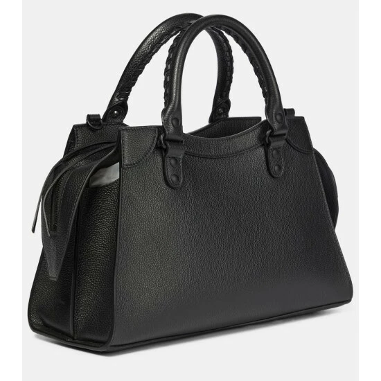 The black Neo Classic tote is a modern interpretation of Balenciaga’s original It-bag. This Small calfskin design has a newly structured silhouette with a grained finish. Devotees to the original will appreciate the classic details retained by Demna Gvasalia, from the hand-braided top handles to the stud hardware.